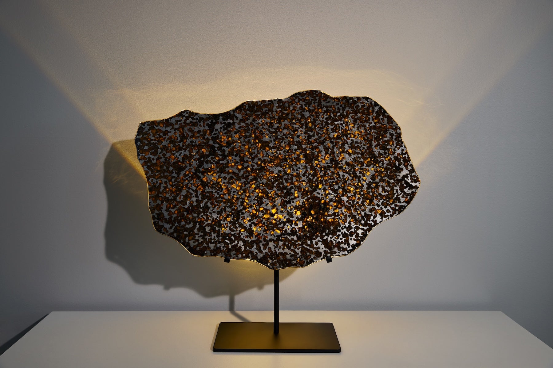 Pallasite, such as this one, represent the rare intersection of science and natural beauty, formed at the boundary between the core and mantle of a differentiated asteroid. They provide an extraordinary glimpse into planetary formation, bridging the shared origins of Earth and the celestial bodies beyond. Brenham, discovered in Kansas in 1882, stands as one of the most renowned of these meteorites. This specimen, with its exceptional size and clarity, embodies the elegance and wonder of cosmic geology, making it a prized acquisition for collectors and scholars alike.