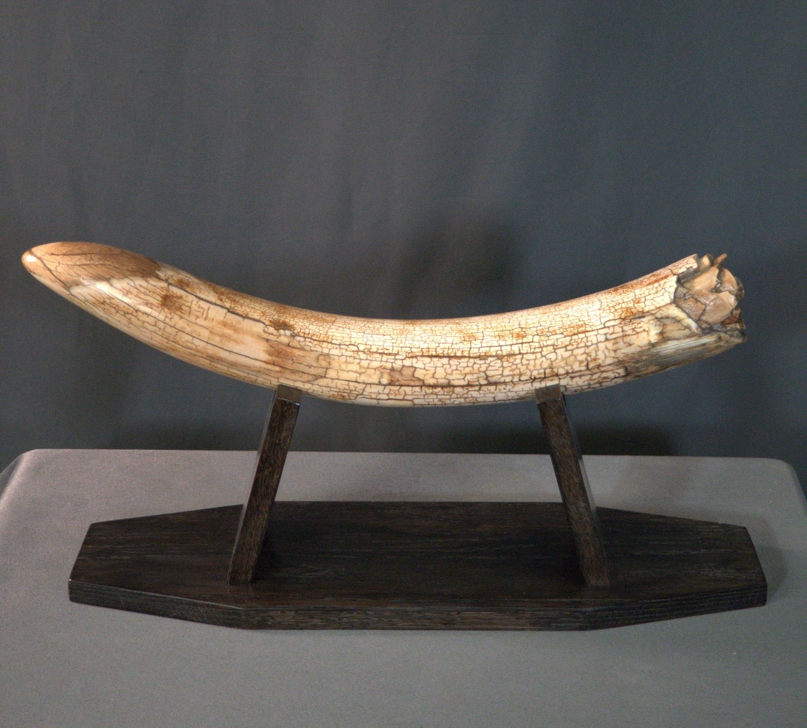 A custom-made stained solid oak stand showcases this Ice Age treasure’s beautiful curvature.